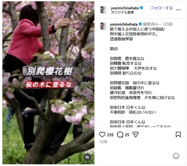 コメント 【笑】台湾でバズってるAI創作ソングが秀逸「歌で覚える中国人に使う中国語」「♪鹿を蹴るな♪転売するな♪大声を出すな♪割り込むな♪桜の木に登るな♪日本くんな」