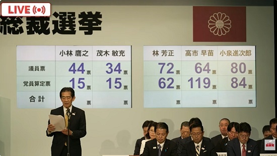 決戦投票で麻生派、小林陣営、茂木陣営らが高市早苗氏に投票。 pic.twitter.com/KDg1ZOMdiX