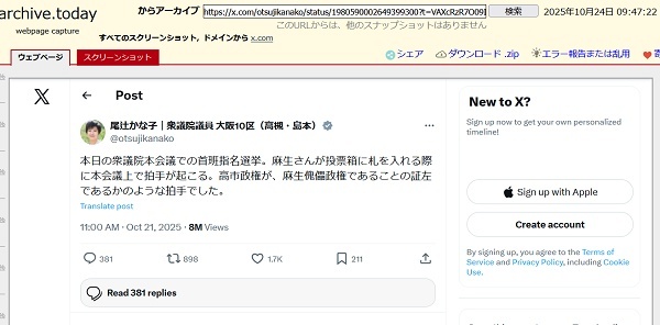 — 尾辻かな子|衆議院議員 大阪10区(高槻・島本) (@otsujikanako) October 24, 2025