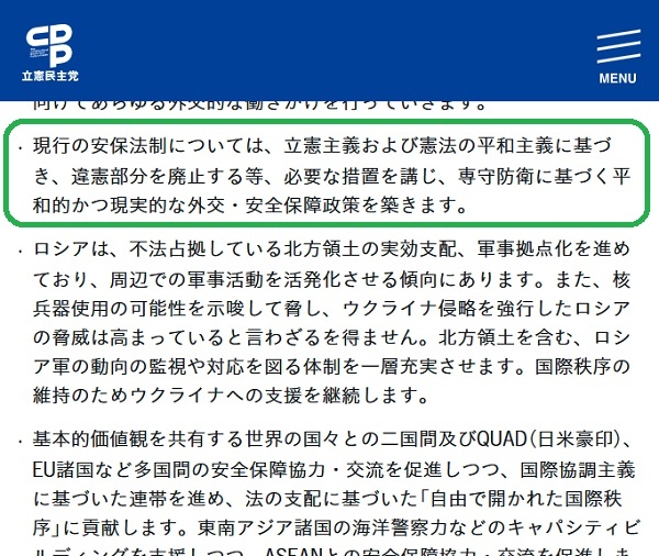 コメント 【w】立憲民主党 政策集2025「安保法制の違憲部分を廃止する!」 枝野「違憲部分はない」 野田「違憲状態だったことはない」