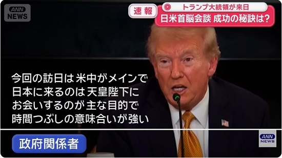 コメント 【は?】テレビ朝日「トランプ大統領の来日は時間つぶし、メインは米中、と政府関係者が言ってます」