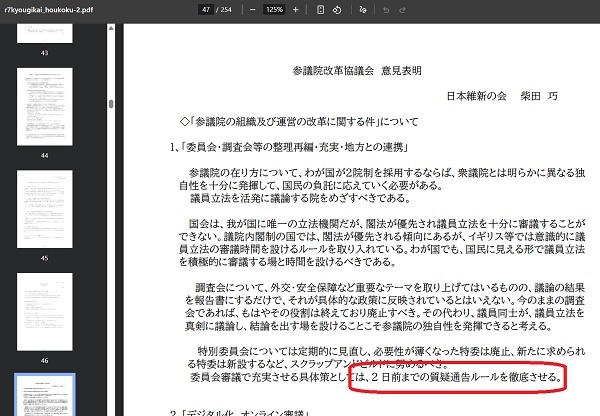 コメント 共産党 山添議員「2日前通告ルール、なるものは存在しない」 ※ 参議院改革協議会報告書「2 日前までの質疑通告ルールを徹底させる」