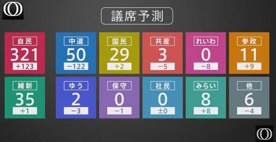 コメント 速報★衆院選議席予測:自民321 維新35 中革連50